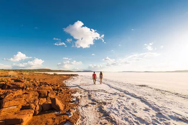 巨大的橘色火山岩石群,与如明镜般耀眼的天空之境——盖尔德纳湖(Lake Gairdner) 共存于高勒国家公园(Gawler Ranges National Park)内,使得这片壮观的荒野地貌,有了更为俊美的一面。为了享受这份"简朴却不粗糙,舒适却不破坏自然"的美感,你可以下榻于搭建在国家公园内的生态帐篷(Kangaluna Camp) 。在浩瀚星空下,燃起一把篝火,便可畅谈一宿。