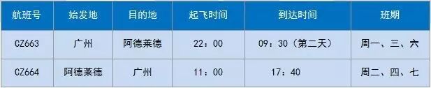 ▲中国南方航空执飞的广州往返阿德莱德 时刻表