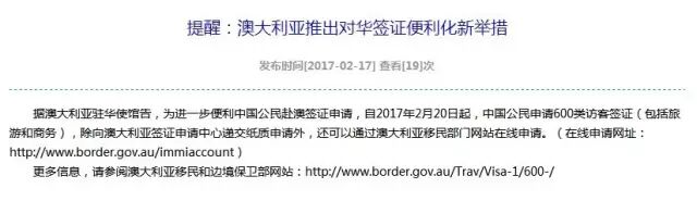 今年的2月17日起,无论是申请十年"常旅客"签证,还是一年或三年多次往返 的澳大利亚旅游签,中国公民都可以通过网上在线申请,更加简化及便利 !