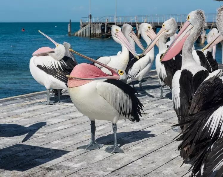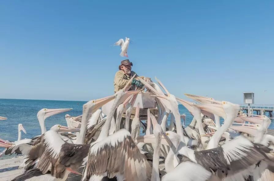 在岛上的Kingscote港口,人称"鹈鹕爷爷"的John每天下午五点 就会准时前来给鹈鹕喂食,而 鹈鹕们则会提前半个小时来等待这场 二十年如一日的约会。据说,John二十年里只缺席了四天,实在可敬~每到下午四点半左右,游客们也会纷纷前来,坐在码头的木制长椅上等待这场有爱的互动。